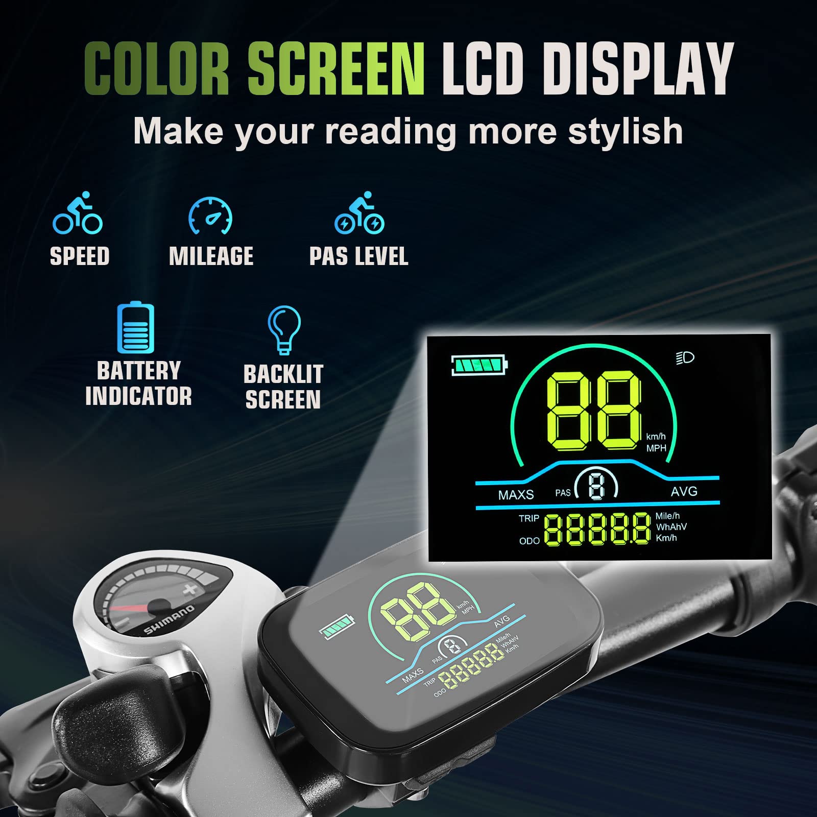- ►48V 500W(750W PEAK) POWERFULL MOTOR--Equipped with 500W/750W peak high speed brushless motor, increases stronger hill-climbing power, provids more than enough to power your daily commute, a cruise on the mountain, or a meander along your favorite trail. With speeds up to legal safe speed 20 mph, it will get you there swiftly.