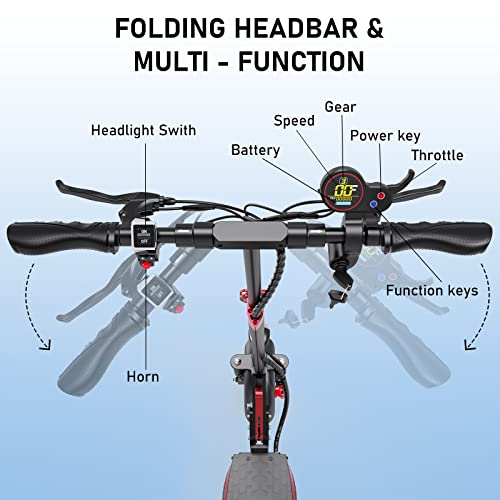 - UNIQUE AND HUMANIZE - The adult electric scooter is equipped with wider foot anti-slip pedal for larger feet support, high lumen head lamp for safe night riding, and clear LED display for relaxing riding.