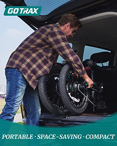 - 【Foldable and Portable Design】GOTRAX's selection of folding electric bikes make it easy to enjoy the outdoors while still being compact enough for easy portability. You can easily put it in the trunk of your car or take it on the subway to make your commute smooth without traffic jams. And when you're ready for some outdoor adventures, simply unfold the bike and you're ready to go. (Folded size:37.4*17.7*27.5inch)