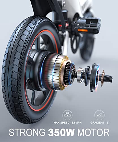 - PARAMETERS: 350W Powerful electric bikes with a 36V built-in rechargeable Lithium-Ion 10.4Ah battery (5-6h charging time) and up to 18.5mph speed.