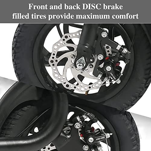 - Safe and Durable: the sports electric scooter adults is equipped with double braking systems, the front and back disc brake of the electric bike give you double safety. The high-intensity LED front light and rear reflectors provide you a safe ride even in the evening. The 12" tires is built special for multi-terrain of daily use or outdoor activities